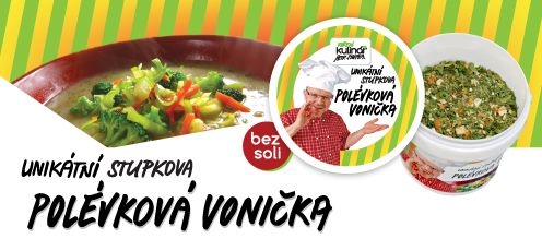 Unikátní polévková vonička je vhodná také do omáček, těstovin i pomazánek. Universální směs sušených natí a kořenové zeleniny. Koření je vhodné do vývarů, polévek, omáček. Perfektní na zeleninu, rýži i brambory, do dresinků, pomazánek, salátů. Parametry koření Kulinář polévková vonička Hmotnost: 45 g Složení: kořenová zelenina, petržel, pažitka, pórek, libeček výrobek obsahuje alergen: celer Baleno v praktickém plastovém kbelíčku. O koření Kulinář Petr Stupka Koření je vyrobeno pouze z čerstvých a kvalitních sušených bylin, zeleniny, koření a mořské soli. Ve směsích nejsou žádná „Éčka“, ochucovadla a nepřirozené prvky. Koření obsahuje pouze 15% mořské soli. Balení v plastových kyblíčcích zaručuje dlouhou trvanlivost, umožňuje praktické použití a přehledné stohovatelné uložení. Český výrobek Kulinář Petr Stupka je chráněná česká značka garantující vysokou kvalitu nabízeného koření. Koření Kulinář vyrábí Jiří Červenka - Tábor - Sezimovo Ústí v certifikovaném provozu. Správné použití Pro směsi bylin, zeleniny a koření všeobecně platí, že stačí jen poměrně krátké povaření, podušení či dopékání a proto je přidávejte do pokrmů v závěrečné nebo konečné fázi úpravy. Chuťové a vonné látky v každém koření ničí přílišný žár, rozpálený tuk, prudký gril nebo trouba nad 180°C. Kvalita a cena Zkuste si cenu Koření Kulinář přepočíst na gramy a porovnejte ji s konkurencí, popřípadě vyhodnoťte obsah soli ve směsích. Nakonec přivoňte a porovnejte kvalitu. Rozhodně se srovnávání nebojíme!
