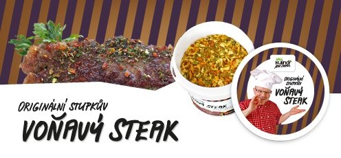 Voňavý steak je jedinečná pepřová směs na maso, ryby i zeleninu. Originální Stupkův Voňavý steak je směs koření a sušené zeleniny s důrazem na pepř a cibuli. Nejlepšího výsledku dosáhnete nasypáním na opečené steaky a pozvolným dopékáním. Vhodné také na pečená, dušená i sekaná masa a grilované ryby. Perfektní do cibulačky i omáček. Parametry koření Kulinář voňavý steak Hmotnost: 70 g Složení: cibule, mořská sůl (max. 15%), paprika, černý pepř, kmín, petržel nať, mrkev, kurkuma, tymián Baleno v praktickém plastovém kbelíčku. O koření Kulinář Petr Stupka Koření je vyrobeno pouze z čerstvých a kvalitních sušených bylin, zeleniny, koření a mořské soli. Ve směsích nejsou žádná „Éčka“, ochucovadla a nepřirozené prvky. Koření obsahuje pouze 15% mořské soli. Balení v plastových kyblíčcích zaručuje dlouhou trvanlivost, umožňuje praktické použití a přehledné stohovatelné uložení. Český výrobek Kulinář Petr Stupka je chráněná česká značka garantující vysokou kvalitu nabízeného koření. Koření Kulinář vyrábí Jiří Červenka - Tábor - Sezimovo Ústí v certifikovaném provozu. Správné použití Pro směsi bylin, zeleniny a koření všeobecně platí, že stačí jen poměrně krátké povaření, podušení či dopékání a proto je přidávejte do pokrmů v závěrečné nebo konečné fázi úpravy. Chuťové a vonné látky v každém koření ničí přílišný žár, rozpálený tuk, prudký gril nebo trouba nad 180°C. Kvalita a cena Zkuste si cenu Koření Kulinář přepočíst na gramy a porovnejte ji s konkurencí, popřípadě vyhodnoťte obsah soli ve směsích. Nakonec přivoňte a porovnejte kvalitu. Rozhodně se srovnávání nebojíme!