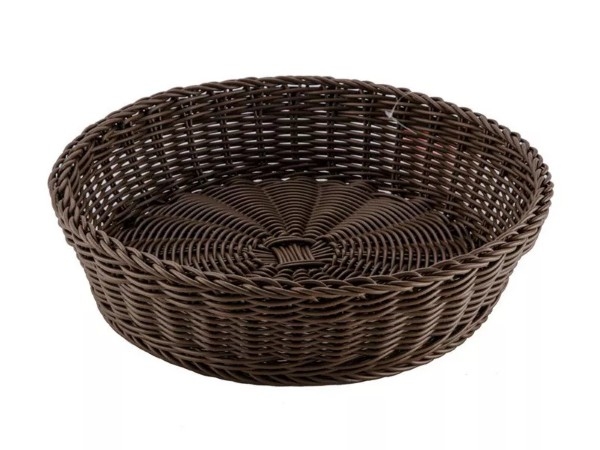 Košík z umělého proutí, imitace ratanu. Hnědá barva. Celý popis >