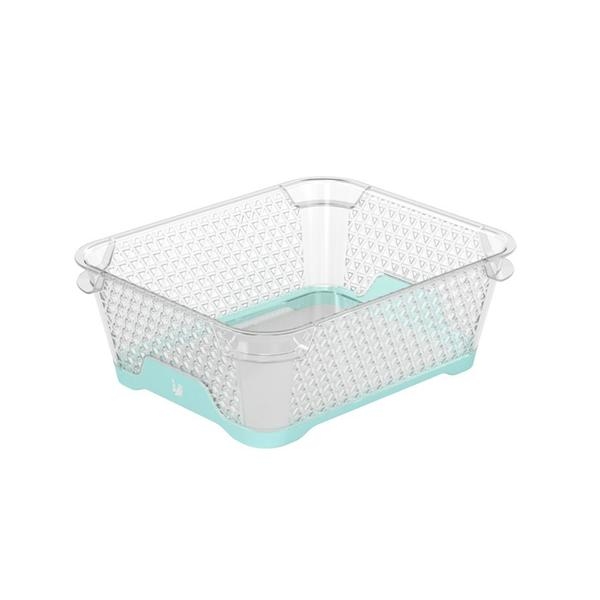 Víceúčelový košík velký s protiskluzovým dnem, transparentní + světle modrá barva. Rozměry: 20 x 16 x 7 cm Celý popis >
