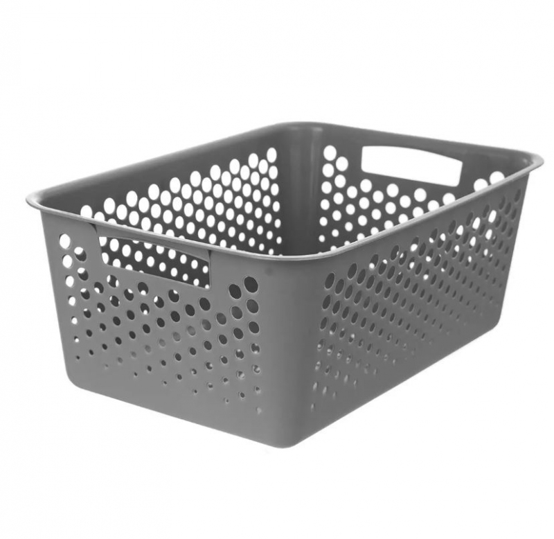 Košík s uchy uloží různé drobnosti, spodní prádlo, kosmetické potřeby, úklidové prostředky... Materiál: plast PP. Rozměry: 36,5x25,5x14,5 cm. Celý popis >