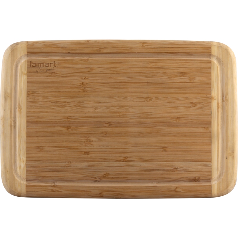 Krájecí deska vyrobena z bambusového materiálu. Vrchní strana s drážkou pro zachytávání nečistot a tekutin. Po použití umyjte a otřete do sucha. Netupí ostří nožů. Krájecí deska není určená do myčky na nádobí.| Výrobce: | Lamart |