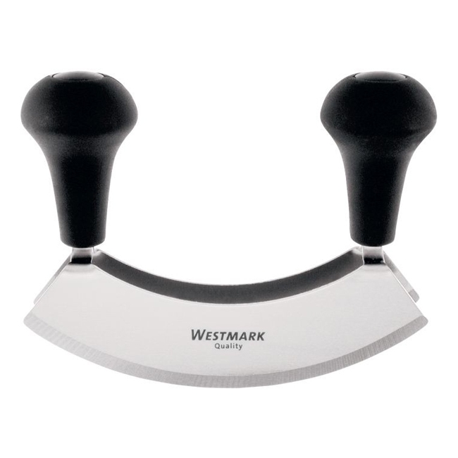 Dvoubřitá, velmi ostrá krájecí kolébka z nerezové oceli, s plastovými, kruhově formovanými úchyty pro bezpečné držení, délka čepele je 175 mm. Tato krájecí kolébka je ideálním pomocníkem pro rychlé nakrájení většího množství bylinek, česneku, cibule a podobně. Materiál: Nerezová ocel, rukojeti z plastu PP.| Výrobce: | Westmark |