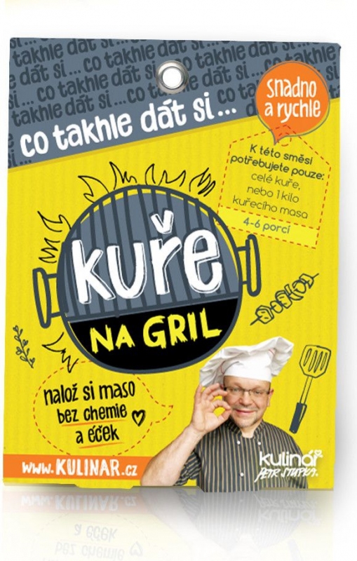 Výborná směs na přípravu grilovaného kuřete. Kulinář Kuře na gril 30 g Vám umožní naložit kuře či jiné maso bez chemie a éček. Tato směs je vhodná na 1 kg kuřecího masa či jedno celé kuře (4-6 porcí). Složení: bramborový škrob, mořská sůl (21,5%), sušená cibule, paprika, kmín, česnek, pepř černý, kurkuma, tymián, rozmarýn. Dodáváno v sáčku v papírovém obalu. O koření Kulinář Petr Stupka Koření je vyrobeno pouze z čerstvých a kvalitních sušených bylin, zeleniny, koření a mořské soli. Ve směsích nejsou žádná „Éčka“, ochucovadla a nepřirozené prvky. Český výrobek Kulinář Petr Stupka je chráněná česká značka garantující vysokou kvalitu nabízeného koření. Koření Kulinář vyrábí Jiří Červenka - Tábor - Sezimovo Ústí v certifikovaném provozu. Správné použití Pro směsi bylin, zeleniny a koření všeobecně platí, že stačí jen poměrně krátké povaření, podušení či dopékání a proto je přidávejte do pokrmů v závěrečné nebo konečné fázi úpravy. Chuťové a vonné látky v každém koření ničí přílišný žár, rozpálený tuk, prudký gril nebo trouba nad 180°C. Kvalita a cena Zkuste si cenu Koření Kulinář přepočíst na gramy a porovnejte ji s konkurencí, popřípadě vyhodnoťte obsah soli ve směsích. Nakonec přivoňte a porovnejte kvalitu. Rozhodně se srovnávání nebojíme!