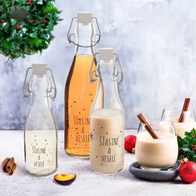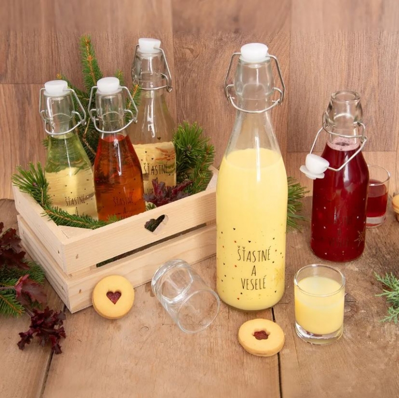 Láhev s dekorem na slivovičku, vaječný likér, sirup, šťávu a jiné nápoje. Celý popis >
