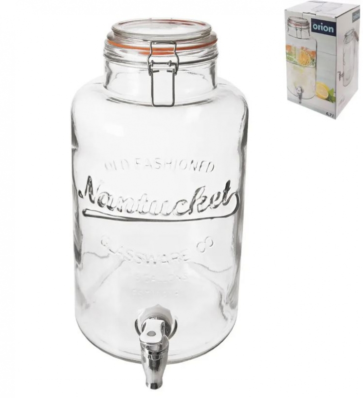 Láhev sklo/kov kohoutek 6,7 l