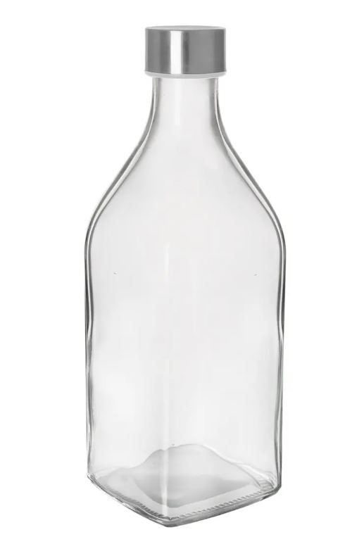 Skleněná hranatá láhev s nerezovým uzávěrem na závit je ideální na servírování vody, šťávy, ovocných sirupů, ledového čaje... Celý popis >