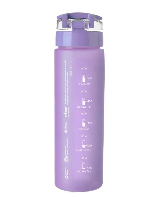 Vhodná do školy, na výlet, na sport, na studené i teplé nápoje… Výborně těsní a neteče. Materiál: tritan – kvalitní plast, plast PP, silikonové těsnění, TPE. Rozměry: objem 0,63 l, pr. 7 cm, v. 23,5 cm. Lze mýt v myčce na nádobí (bez víčka). TRITAN – tento plast nejen že neobsahuje plastifikátory, ale má i řadu jiných výhod, které z něj činí populární náhražku skla. Je vysoce odolný vůči nárazům, takže je vhodný nejen pro každodenní použití například do školy, do práce či na turistiku, obdivuhodná je jeho průhlednost a čistota materiálu, lehkost, nepřejímá žádné chutě ani vůně, vydrží nízké i vysoké teploty, může se mýt v myčce na nádobí tedy je snadná údržba, a především neobsahuje žádné zdraví škodlivé látky, odpovídá požadavkům na ochranu životního prostředí a FDA (Úřad pro kontrolu potravin a léčiv). Neobsahuje BPA – materiál Tritan neobsahuje bisfenol A, je zdravotně nezávadný, vhodný pro dětské výrobky. Výborná rázová houževnatost – odolný proti nárazům, vysoká pevnost. Vynikající chemická odolnost – nepřejímá chutě ani vůně, může odolat pracím prostředkům, detergentům, uhlovodíkovým rozpouštědlům, olejům. Velká odolnost vůči teplotám – použití od –10 °C do +95 °C – výrobek lze mýt v myčce na nádobí, avšak není vhodný pro použití v mikrovlnné troubě a mrazáku.