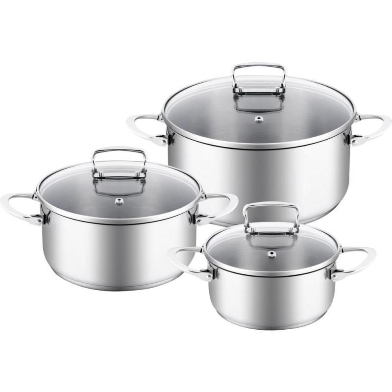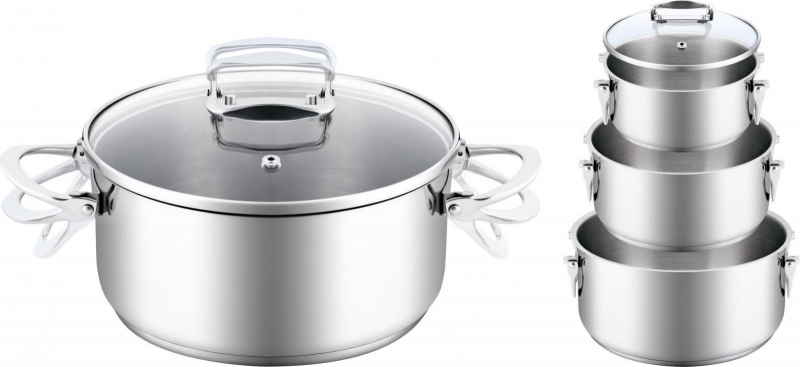 Tato moderní sada nádobí je dokonalým spojením nadčasového designu a dokonalého zpracování všech detailů. Sada je vyrobena z vysoce kvalitní nerezavějící oceli. Takovou specialitou tohoto nádobí jsou sklopné úchyty a to jak na hrncích, tak i na skleněných poklicích, díky tomu je nádobí dokonale skladné. Lamart Sada nerezového nádobí skládací Stockage 6 ks je určena pro každodenní intenzivní použití v kuchyni. Hrnce jsou opatřeny silným sendvičovým dnem, takže jsou vhodné na všechny typy varných