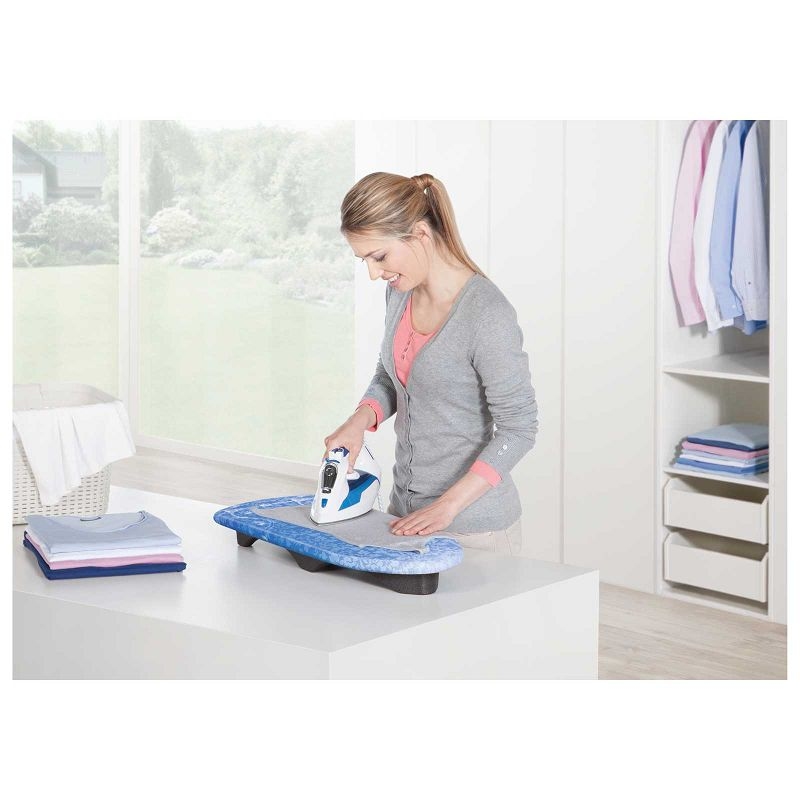 Skvělým a rychlým pomocníkem pro žehlení je žehlící deska od Leifheitu. Je menší než běžné žehlící prkna a stojí na protiskluzových podložkách, můžete jej tak položit kdekoli na pevnou desku, stůl, nebo třeba kuchyňskou linku a bez složitého rozkládání ihned žehlit. Leifheit Žehlicí deska air board table compact 73x30 cm je díky ultra lehké váze a malému rozměru skvěle skladné a vhodné pro použití na chatách, cestách v karavanu, do malého bytu a všude tam kde je třeba šetřit každý centimetr místa. Ocení jej i maminky s dětmi, díky bezpečnému umístění prkna s žehličkou na stole bez dosahu dětí. Žehlení je o 33% účinější a rychlejší díky techonologii " thermo-reflect" , jíž je opatřena deska i speciální potah, které tak akumulují teplo a částečně i páru z žehličky a odráží zpět na oděv, takže je prádlo žehleno z obou stran současně. Speciální patentovaná žehlící deska Lei-Tec je děrovaná, což zabraňuje nežádoucímu srážení vodní páry uvnitř desky. Je stabilní díky protiskluzovým podložkám, které navíc nepoškodí žádný povrch. Potah prkna je z bavlny a je opatřen stahovací šňůrou. Díky speciálnímu tvarování pro žehlení ramen je vhodné také pro jednoduché žehlení triček a košil. Dekor dle dodavatele, v případě zájmu o konkrétní dekor jej prosím uveďte do poznámky v objednávce.