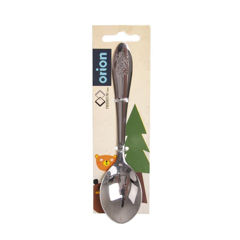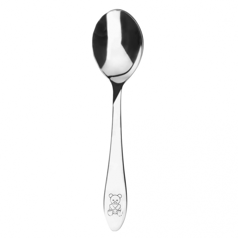 Dětská lžíce s dekorem medvídka. Materiál: kvalitní nerez. Tvar přizpůsobený dětem. Lze mýt v myčce na nádobí. Rozměry: (délka/šířka) 15,5/3,5 cm.| Výrobce: | Orion |