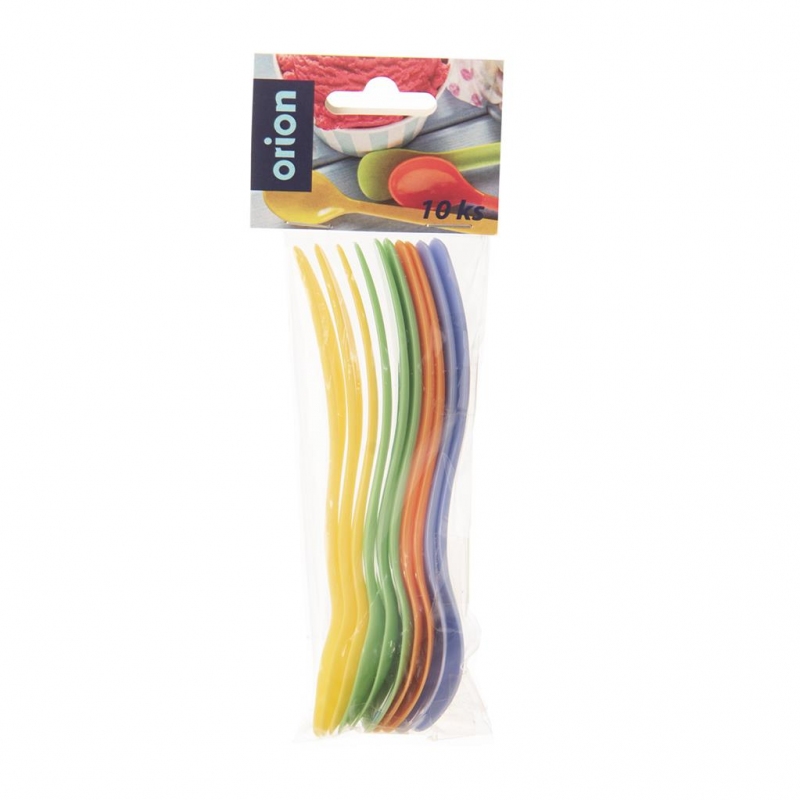 Lžička barevná. Materiál: plast. Mix barev. Sada 10 ks. Rozměry: d. 14 cm, š. 2,5 cm.| Výrobce: | Orion |