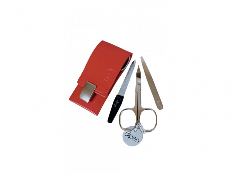 Manikúra je nezbytnou součástí kosmetické výbavy nejen každé ženy, ale i muže, protože čisté a upravené nehty jsou vizitkou každého jednotlivce. Kapesní sada v koženém pouzdře s magnetickým zavíráním od italské značky Alpen zrcadlí nadčasovou eleganci. Sada nabízí tři nezbytné nástroje pro péči o ruce. Nástroje jsou vyrobeny z kvalitní poniklované oceli s pečlivou péčí řemeslných mistrů Lombardie. Vyrobeno z kvalitní kůže. Manikúrní nástroje vysoké kvality, vyrobené z poniklované, uhlíkové oceli C50. Sada obsahuje: kompaktní pouzdro se sponou s magnetickým zavíráním, kombinované nůžky na nehty i na nehtovou kůžičku, pinzeta se šikmým hrotem, pilník na nehty. Vyrobeno v Itálii.| Výrobce: | ALPEN |