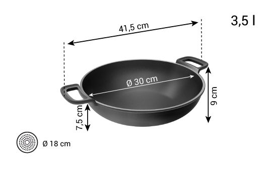 Masivní litinový wok MASSIVE je ideální pro přípravu masa, ryb a zeleniny i přípravu řady dalších pokrmů v domácí kuchyni. Silnostěnná litina vyniká vysokou akumulací tepla a pokrmy připravované v nádobí MASSIVE jsou velmi rychle a zároveň dokonale propečené. Specifickou vlastností litinového nádobí je jeho ochranná nepřilnavá vrstva, kterou je nezbytné vytvořit ještě před jeho prvním použitím. Příprava ochranné vrstvy je snadná. Vznikne vypálením tenké vrstvy oleje nanesené na celý povrch nádobí a zahřátím na sporáku nebo v pečicí troubě. Litinové nádobí s vytvořenou ochrannou vrstvou má přirozeně nepřilnavé vlastnosti a je dobře chráněno proti korozi. Důležité přitom je, že vynikající vlastnosti správně používaného i udržovaného litinového nádobí se zvyšují s každým jeho použitím. Litinové nádobí je určeno pro přípravu pokrmů na grilech a plynových sporácích. Díky masivní odlévané konstrukci je litinové nádobí mimořádně odolné a trvanlivé. Myje se bez použití chemikálií, stačí jej vyčistit houbičkou pod tekoucí vodou a dobře osušit. Materiál: masivní železná litina (Cast iron). Čištění: čistěte po každém použití pod tekoucí vodou a osušte, nepoužívejte čisticí prostředky. Záruka: 5 roků.| Výrobce: | Tescoma |