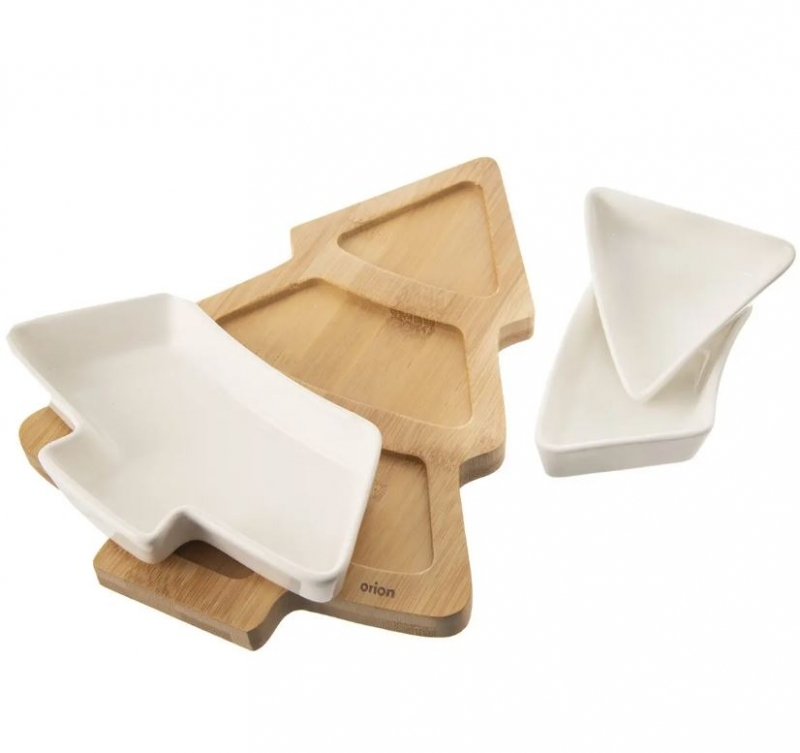 Servírovací set tří misek tvořící strom na tácku. Celý popis >