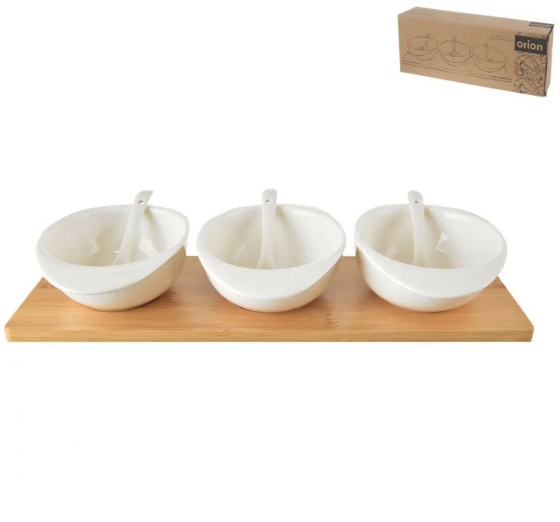 Servírovací set 3 oválných misek, lžiček a bambusovém tácu. Celý popis >