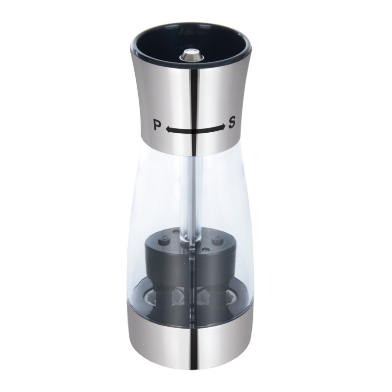 Mlýnek mechanický na pepř a sůl velmi snadno čerstvě namele koření při dokončování pokrmů, ale i dochutí hotová jídla přímo u stolu. Keramický mlecí mechanismus. Možnost nastavení hrubosti mletí pomocí závitu. Materiál: nerez, plast. Rozměry: pr. 7 cm, v. 18 cm.| Výrobce: | Orion |