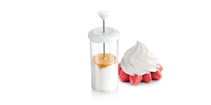 Multifunkční šlehač DELÍCIA se 3 výměnnými desky pro rychlou přípravu šlehačky, bílkového sněhu, mléčné pěny do kávy, vaječných směsí na omelety, palačinky. Výrobek je vyroben z prvotřídního plastu a nerezavějící oceli. Šlehač je vhodný do myčky nádobí. Celý popis >
