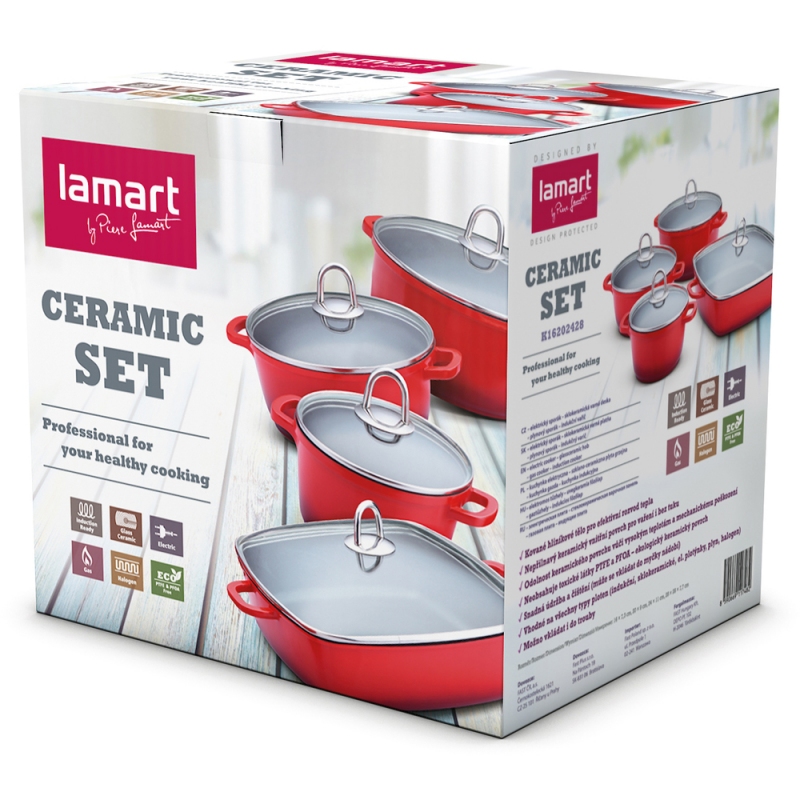 Hliníkové nádobí, antiadhezivní povrch - odolný proti připalování. Rychlé a rovnoměrné vaření na základě rychlého přenesení tepla. Ergonomická měkčená rukojeť. Barevný vnější povrch. Použití na typy sporáků: plynový, elektrický sklokeramický, indukční. Snadná manipulace, údržba a čištění.| Výrobce: | Lamart |