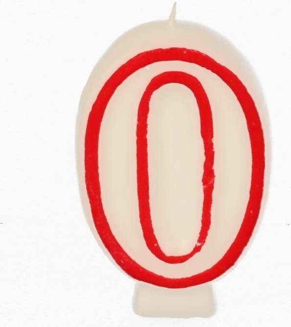 Narozeninová svíčka číslo 0, bílá s červeným okrajem Celý popis >