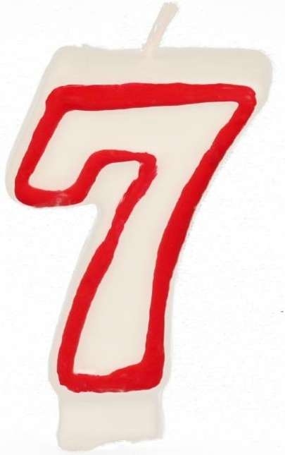 Narozeninová svíčka číslo 7, bílá s červeným okrajem Celý popis >
