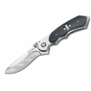 Kvalitní kapesní nůž Magnum Flaming Gross od německého výrobce Böker je velmi praktický a atraktivní, vhodný pro domácí i profesionální použití. Upoutá Vás svým neobvyklým designem – rysy „Železného kříže“ na rukojeti. Čepel: 440 Stainless steel – nerezové ostří Rukojeť: hliník Celková délka: 19,7 cm Délka čepele: 8,1 cm Hmotnost: 163 g