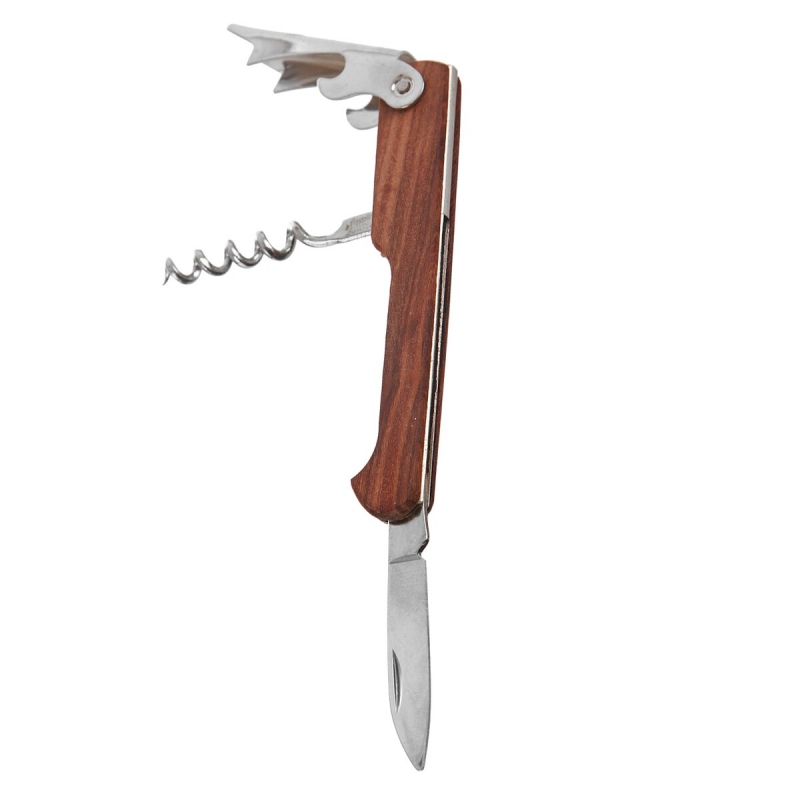 Skládací nůž se 3 funkcemi - nožík, vývrtka a otvírák na láhve. Materiál: nerez, dřevo. Rozměry: složený 11x2,5 cm, d. čepele 4,5 cm. Není vhodný do myčky.| Výrobce: | Orion |