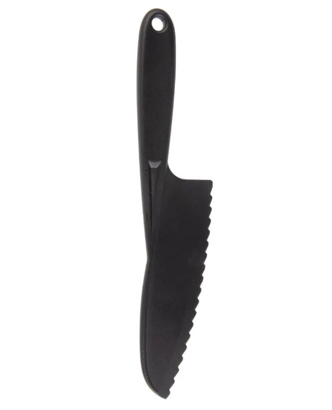 Nůž s vlnitým ostřím je vhodný pro šetrné porcování dortů nebo koláčů ve formách s nepřilnavým povrchem. Dále s ním můžete krájet lasagne, zapečené brambory a nemusíte se bát, že poškodíte plech, pekáč nebo formu s nepřilnavým povrchem. Umožní vám také krájení na silikonovém vále. Materiál: termoplast PBT. Rozměry: celková d. 24,5 cm, d. čepele 14 cm. Lze používat až do teploty +200 °C. Je vhodný do myčky.| Výrobce: | Orion |