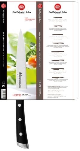 Kuchyňský nůž univerzální, ergonomická proti skluzová rukojeť. Délka: 13 cm.| Výrobce: | CS SOLINGEN |