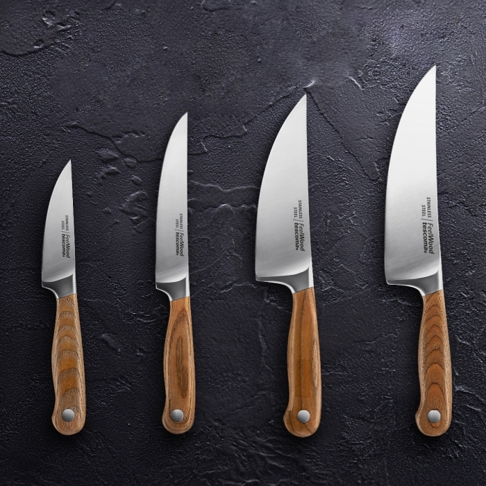 Sortiment FEELWOOD tvoří 8 nejpoužívanějších kuchyňských nožů s délkou čepelí od 9 do 21 cm.