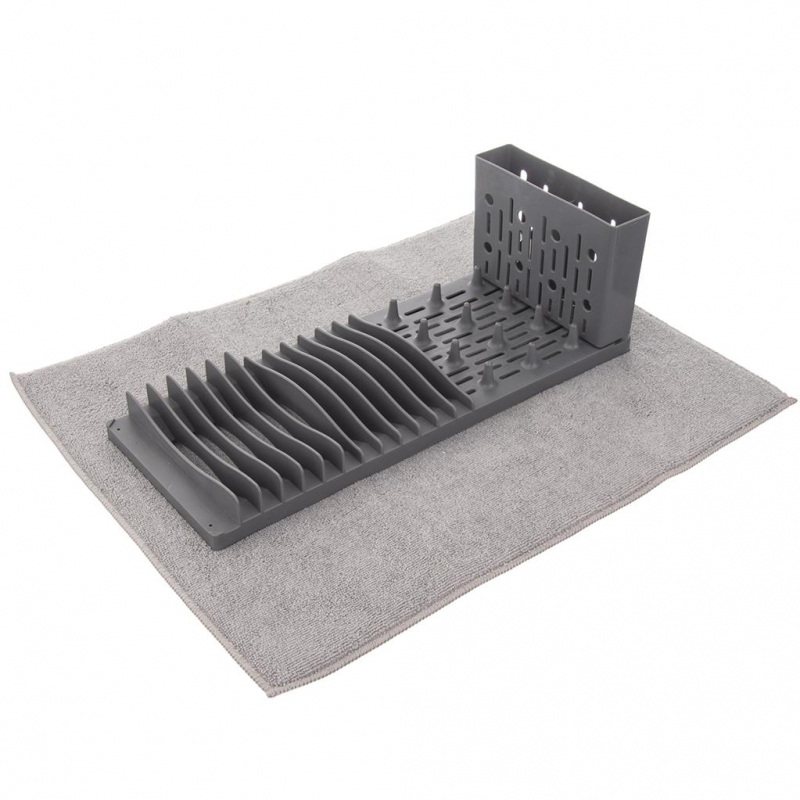 Velice skladný. Plastový díl s velmi savou podložkou. Materiál: plast, mikrovlákno. Lze prát na 40 °C, nepoužívat aviváž ani bělící prostředky. Rozměry: 50x40 cm, plastový díl 40x16x13 cm.
