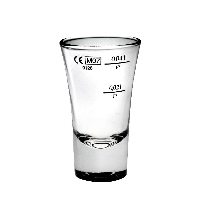 Klasická cejchovaná odlivka z čirého skla 4 cl používaná jako panák na alkohol, vhodná do restaurací, hospod, ale i na domácí použití. Vhodná i jako odměrka alkoholu, má dva cejchy – 2 cl a 4 cl. Rozměry odlivky: průměr 52 mm, výška 82 mm a obsah 40 ml