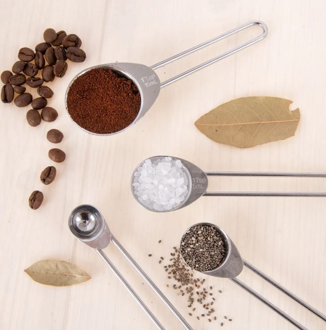 Sada nerezových odměrek na drobné sypké či tekuté ingredience např. na koření, bylinky, kávu, čaj, prášek do pečiva, vanilkový extrakt, jedlou sodu, ocet atd. Celý popis >