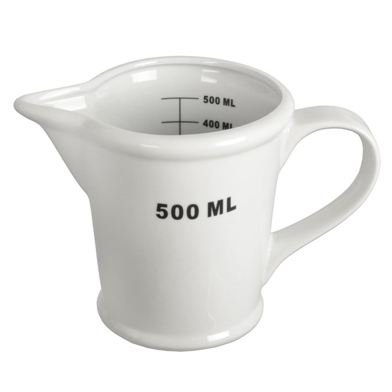 Odměrka s uchem bílá. Stupnice vyznačena do 500 ml - po 100 ml. Materiál: porcelán. Rozměry: pr. 11 cm, v. 12 cm, celkový objem 0,6 l.| Výrobce: | Orion |