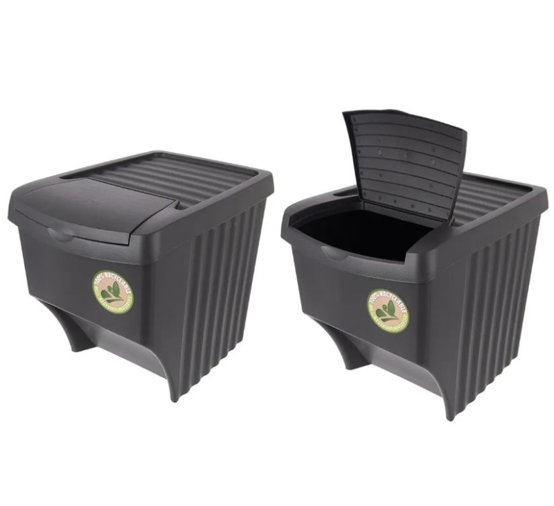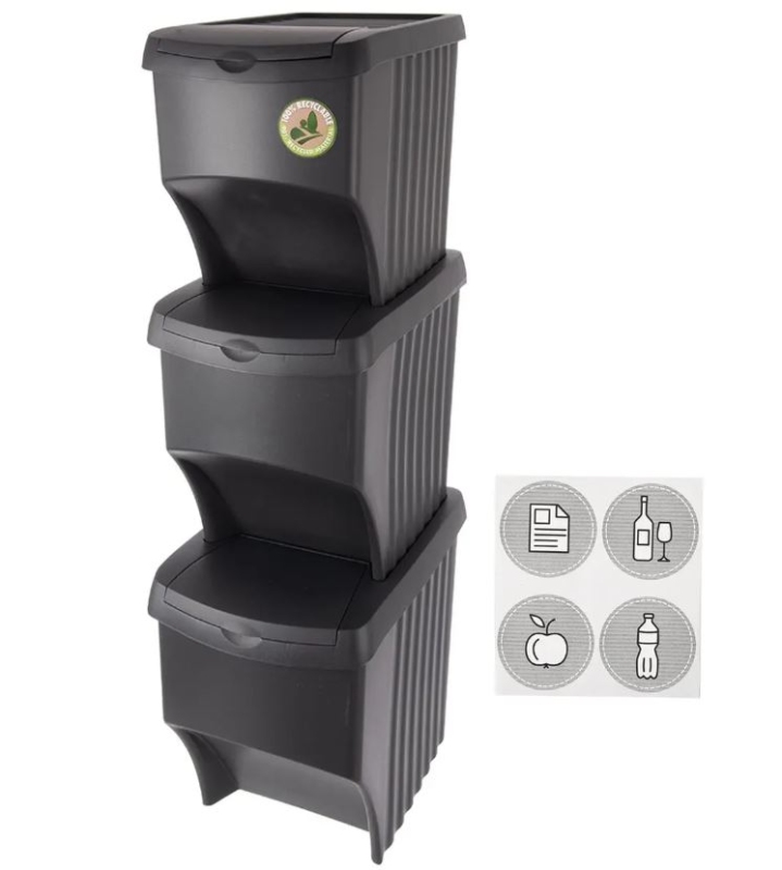 Tři odpadkové koše s víkem na tříděný odpad, které můžete používat jednotlivě nebo jako soupravu košů na tříděný odpad. Můžete si je polepit jednou ze 4 přiložených samolepek (papír, sklo, bio, plast), abyste poznali, co do kterého koše třídit. Nabízí možnost stohování, ale klidně mohou být koše jednotlivě vedle sebe. Využijete je v kuchyni, v garáži, v dílně... Materiál: plast PP (100% recykl.). Rozměry: objem jednotlivých košů 22 l, rozměr celkové sestavy (3 koše nad sebou) 29x39x99 cm, rozměr jednoho koše 29x39x33 cm.| Výrobce: | Orion |