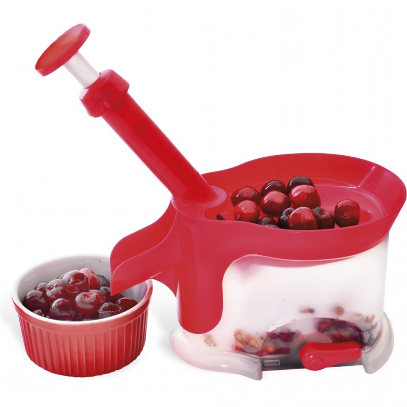 Odpeckovač třešní a višní snadno připraví ovoce k pečení koláčů. Ovoce postupně vsypeme do násypky, pomocí pružinového systému je pecka protlačena do zásobníku. Odpeckované ovoce pak vypadne mimo strojek do připravené nádoby. Materiál: plast. Připevnění ke stolu pomocí přísavky.| Výrobce: | Orion |