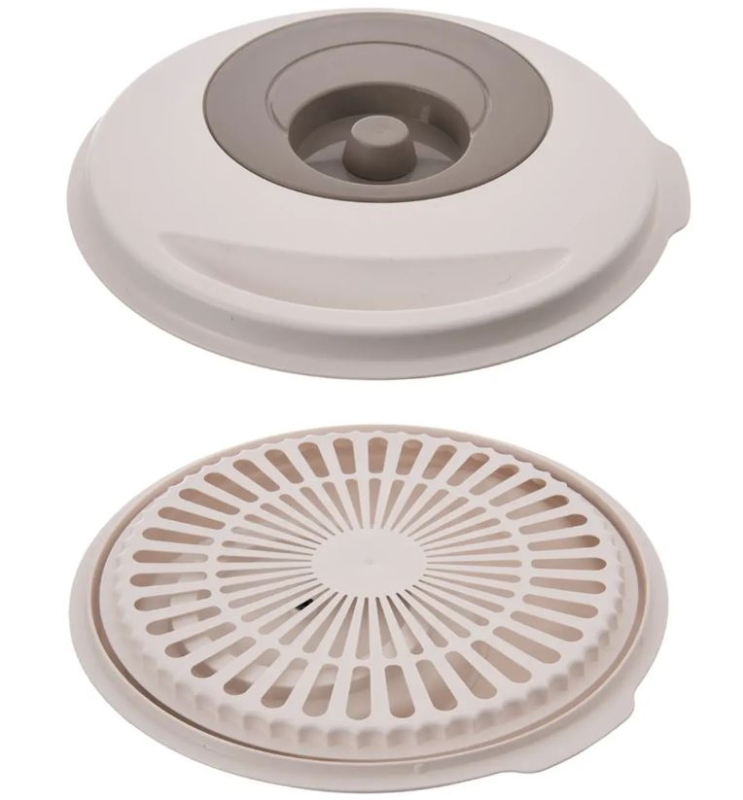 Materiál: plast PPR (mísa), plast PPH (víko a cedník). Vhodné pro teplotu do max. +95 °C.