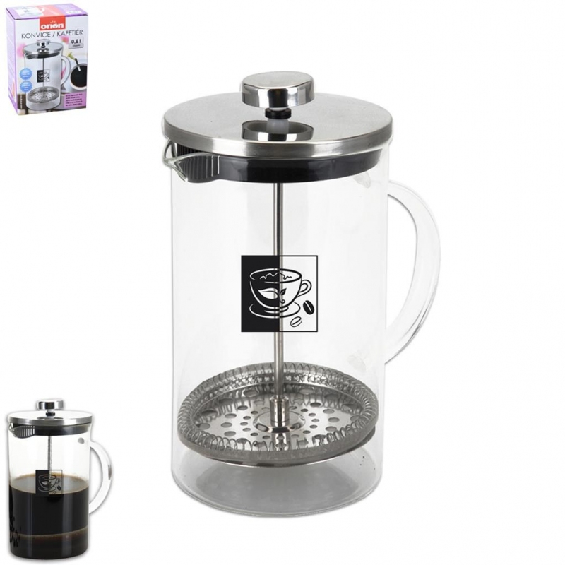 Velice oblíbená konvice pro přípravu mleté zrnkové, obilné či ajurvédské kávy. Snadno v ní připravíte také sypaný, zázvorový, nebo bylinkový čaj. Můžete ji využít doma, v práci či na dovolené. Orion Kávopres se sítkem 0,8 l je vyroben z čirého skla (odolné teplotám do 180°C, ale nejedná se o varné sklo) s uchem ze stejného materiálu. Víko konvice je spojeno s vytahovacím sítem, tato část je z nerezového kovu. Sítko u nálevky zachycující zbytky čaje či kávy je z nezávadného plastu. Upozornění: Konvici nejdříve nahřejte teplou vodou, ponechte asi 10 min, vylejte a až poté zalévejte nasypaný čaj nebo kávu skoro vařící vodou, nebo dle potřeby pro zvolenou směs. Směs pro nápoj se sype pod vytahovací síto, které zachytává spolu se sítkem u nálevky zalité částice nápoje. Nemíchejte nápoj uvnitř konvice, vlivem tepla je sklo křehčí a mohlo by dojít k poškození. Stlačení pístu provádějte pomalu, aby nedošlo k vystříknutí horké tekutiny do okolí. Čištění není náročné, vysypte, vylejte sedlinu, vypláchněte a omyjte vlažnou vodou případně s tekutým saponátem a nechte vyschnout.