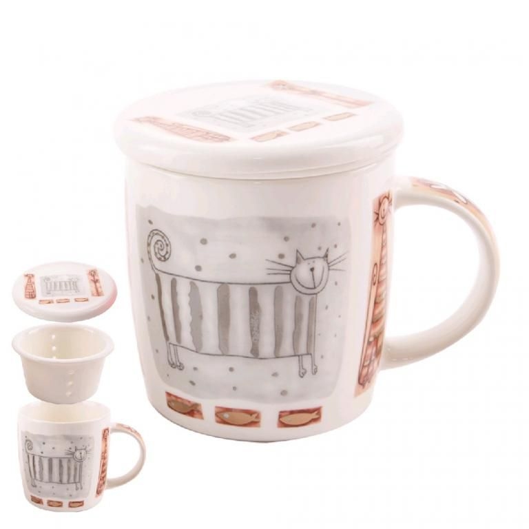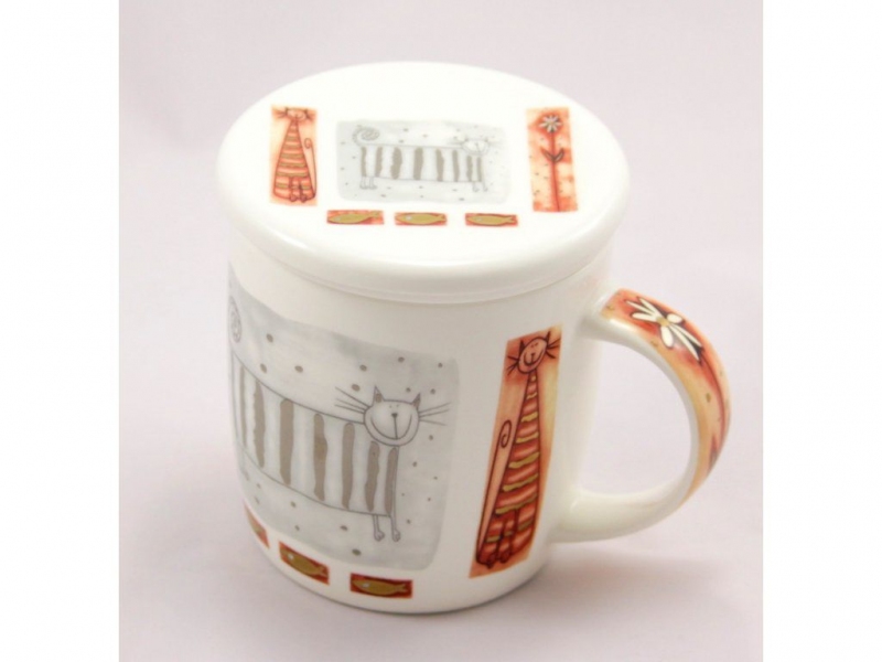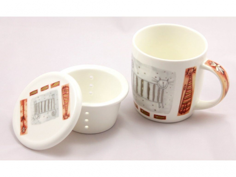 Orion 125473 Porcelánový hrnek se sítkem stříbrná kočka 390 ml