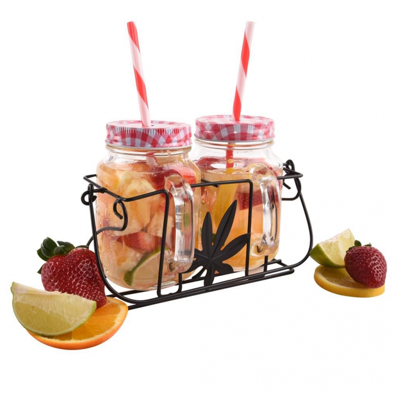 2 ks sklenic, kovový stojánek, sklenice ve tvaru půllitru s ouškem Celý popis >