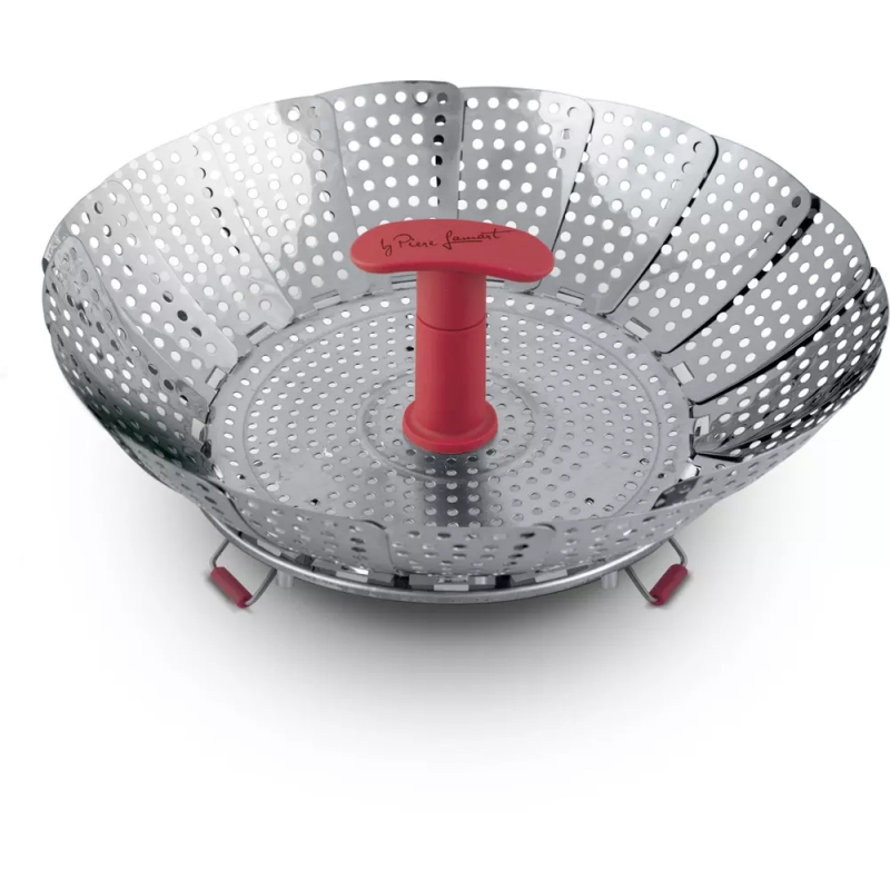 Vhodný k napařování knedlíků, vaření zeleniny a jiných pokrmů v páře - zachovává minerály a vitamíny. Lze použít do hrnců různých průměrů. Pařáček snadno vytáhnete z hrnce s celým obsahem pomocí teleskopického ouška uprostřed. Protiskluzové nožičky. Před prvním a po každém použití umyjte teplou vodou se saponátem, opláchněte a osušte. Výrobek držte mimo dosah dětí. Materiál: nerez, silikon. Barva: stříbrná, červená. Rozměr: O16 cm / O 28 cm.| Výrobce: | Lamart |
