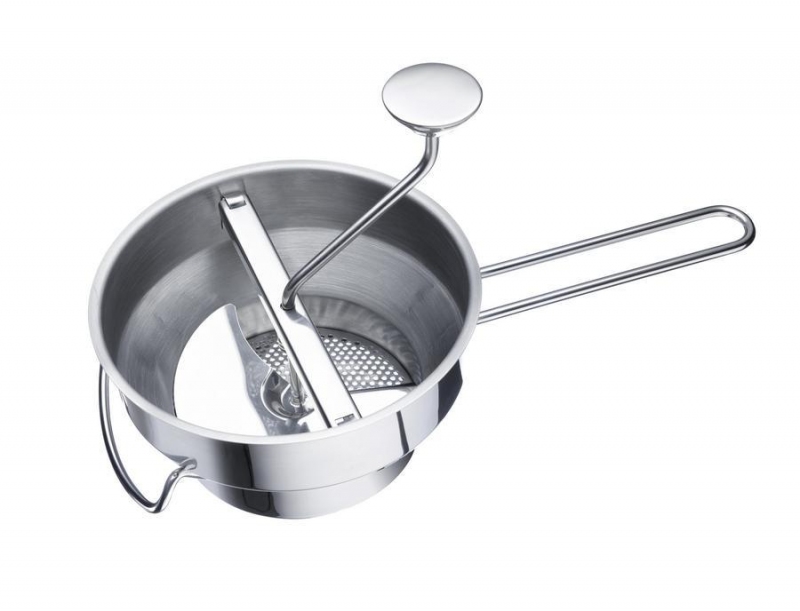Velmi kvalitní pasírovač z prvotřídní nerezové oceli, se třemi různými, výměnnými kotouči pro pasírování a odšťavňování ovoce a zeleniny, uzpůsobený tak, aby jej bylo možné umístit na menší misku i velký hrnec. Rozměry pasírovače jsou 420 x 200 x 220 mm. Materiál: nerezová ušlechtilá ocel.| Výrobce: | Westmark |
