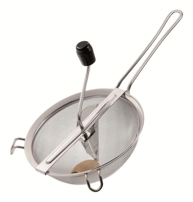 Jemné pasírovací síto z nerezové oceli, vhodné pro přípravu šťáv nebo pyré z ovoce a zeleniny. Je osazeno opěrkami pro pohodlné a bezpečné umístění na mísu nebo hrnec a má odnímatelný pasírovací mechanismus, bez kterého jej můžete využívat jako klasické síto. Průměr síta je 200 mm na vnější straně rámu a 175 mm na vnitřní straně rámu. Materiál: nerezová ocel, pasírovací váleček z tvrdého dřeva.| Výrobce: | Westmark |