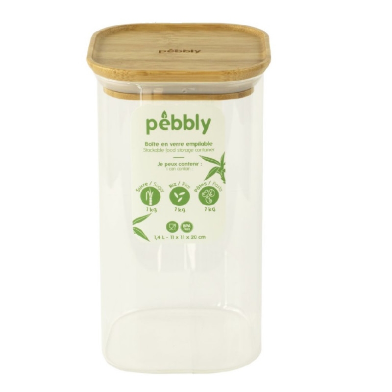 EBBLY Skleněná dóza s bambusovým víkem hranatá 1,4l