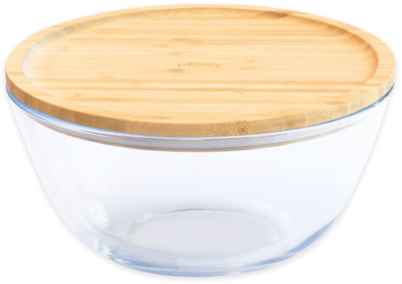 PEBBLY Skleněná miska s bambusovým víkem kulatá 770ml