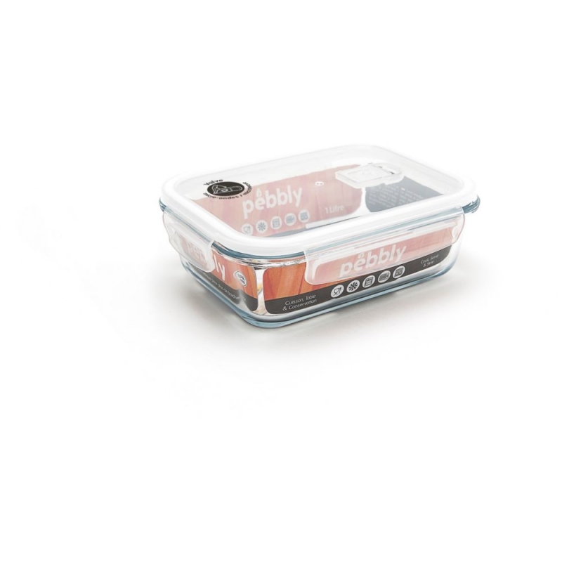 PEBBLY Skleněná nádoba na potraviny s víkem hranatá 1l