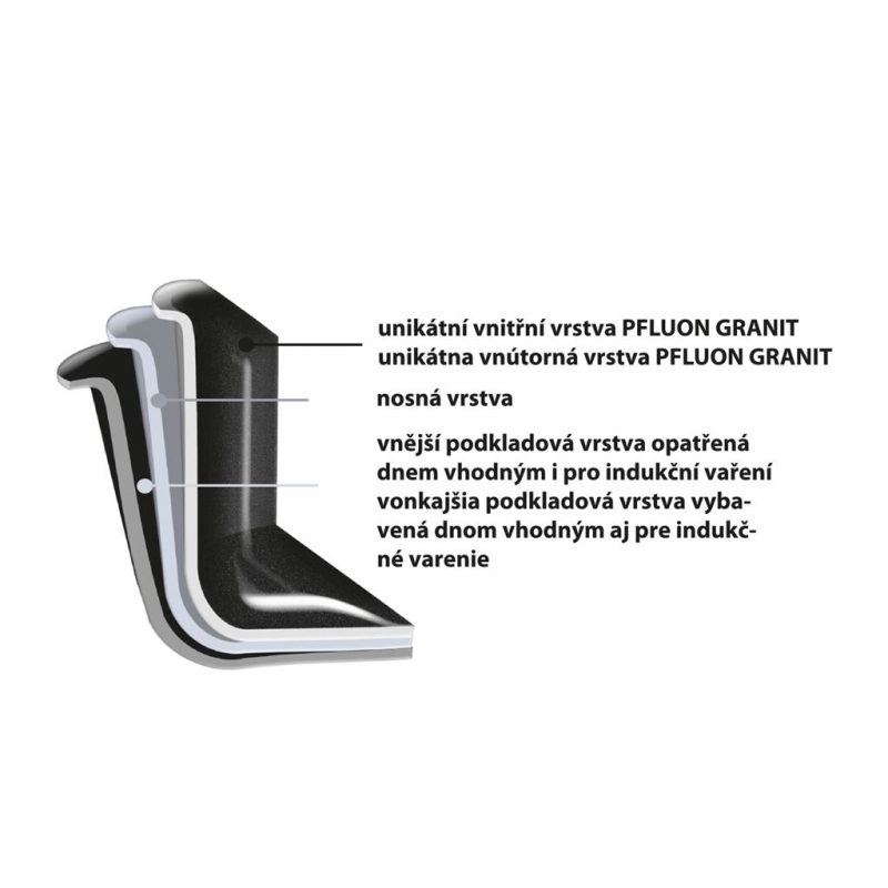 Materiál: hliník s vynikajícím nepřilnavým povrchem PFLUON GRANIT a s profilovaným dnem, skleněná poklice s otvorem pro únik přebytečné páry.