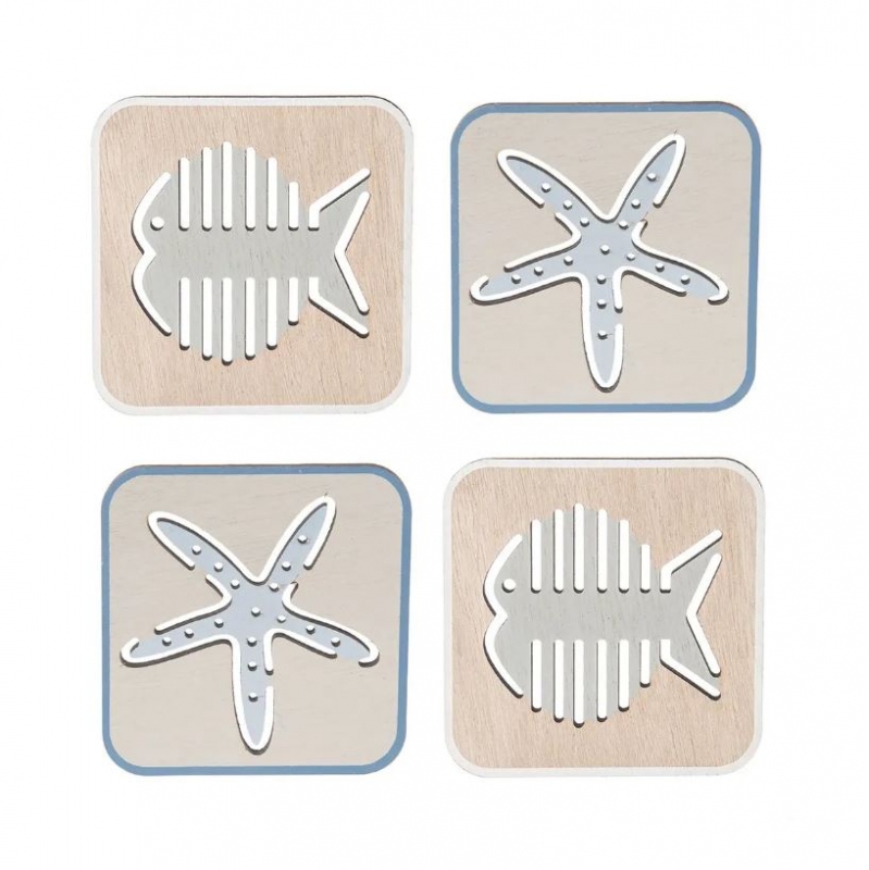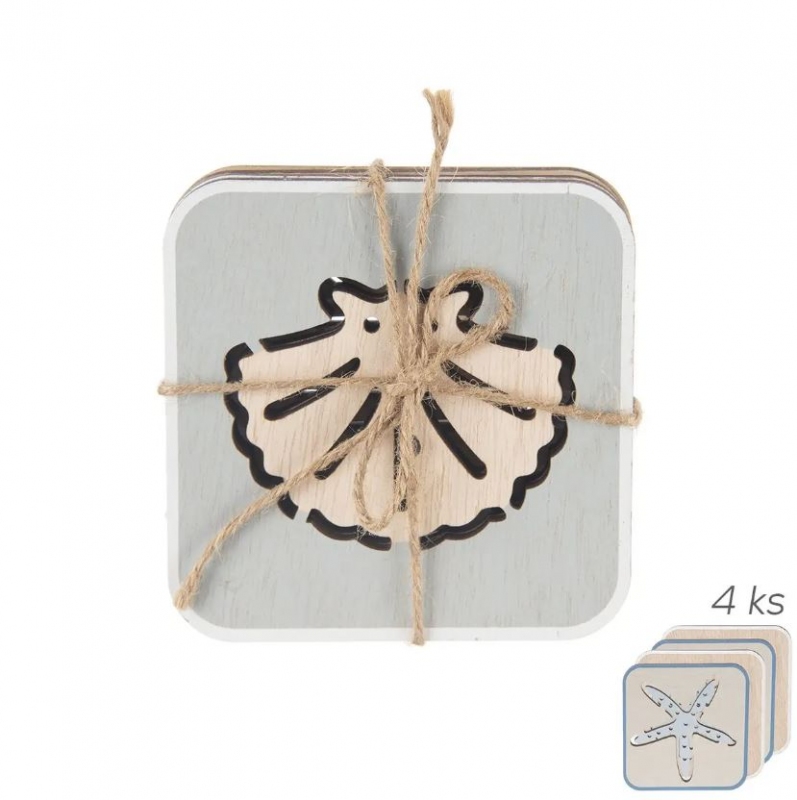 Podtácek dřevo SEA 10x10 cm 4 ks mix