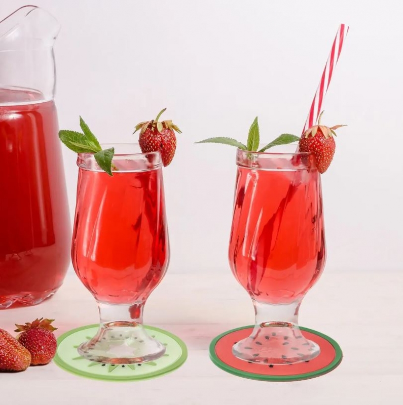 Podtácek ve tvaru ovoce. Zabrání poničení nábytku kolečky od mokrých nebo orosených sklenic. Sada 6 ks, různé druhy ovoce. Materiál: plast PVC. Rozměry: pr. 9 cm, v. 0,2 cm. Celý popis >