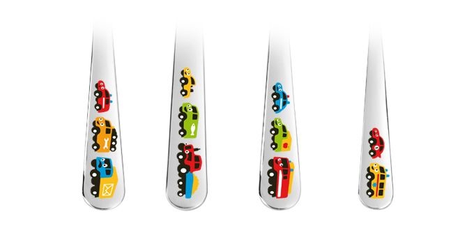Souprava dětských nerezových příborů Bambini s motivem Autíček. Celý popis >